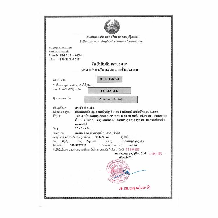 Each tablet contains Alpelisib………150 mg