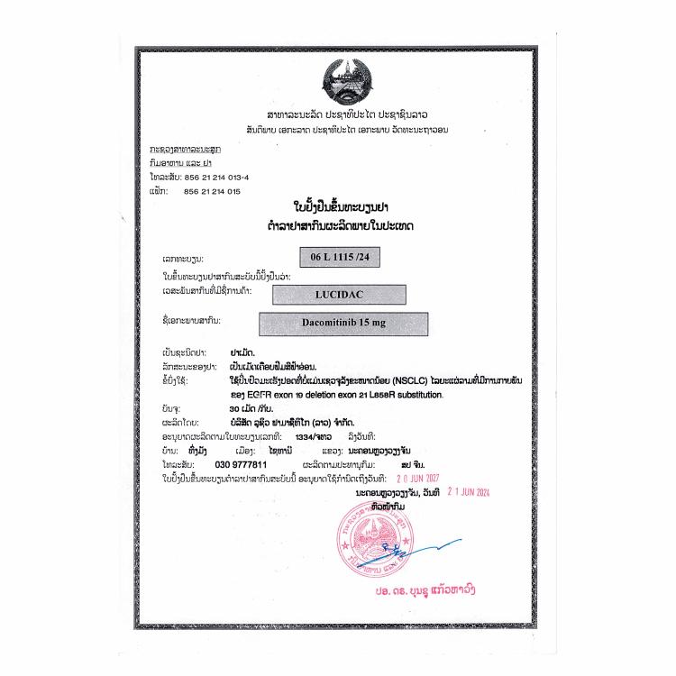 LuciDac is a kinase inhibitor indicated for the first-line treatment of patients with metastatic non-small cell lung cancer (NSCLC) with epidermal growth factor receptor (EGFR) exon 19 deletion or exon 21 L858R substitution mutations as detected by an FDA-approved test.