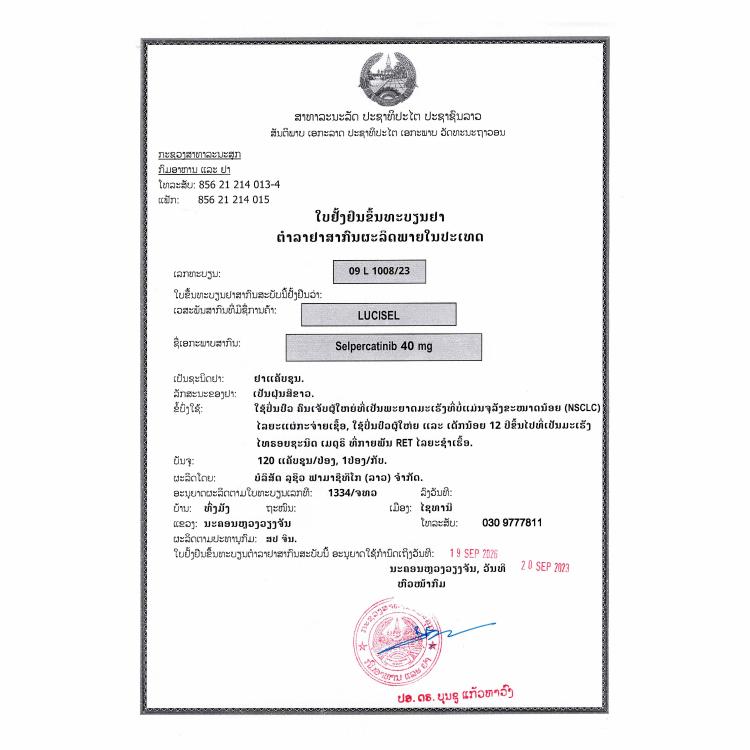 Each capsule contains: Selpercatinib…..………… 40mg