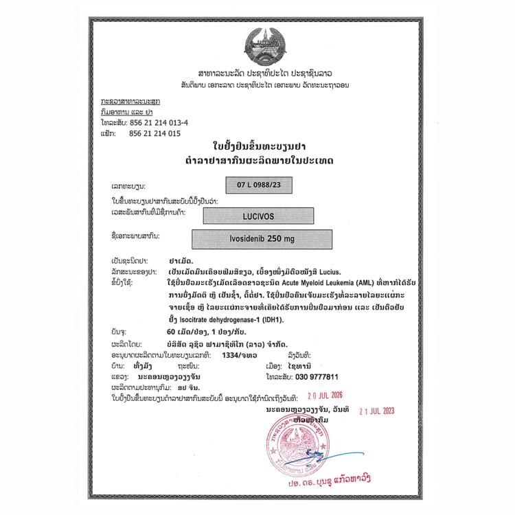 Each LuciVos tablet contains: Ivosidenib…………………… 250mg