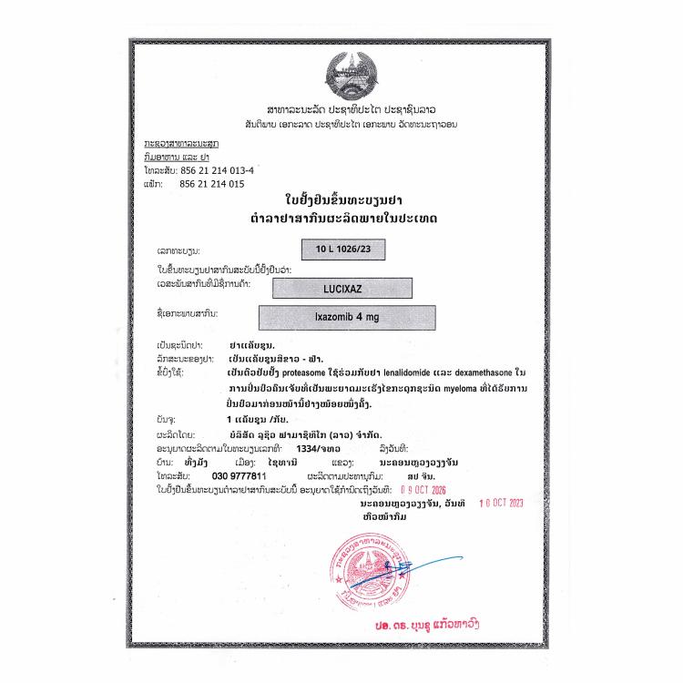 LuciXaz is a proteasome inhibitor indicated in combination with lenalidomide and dexamethasone for the treatment of patients with multiple myeloma who have received at least one prior therapy.